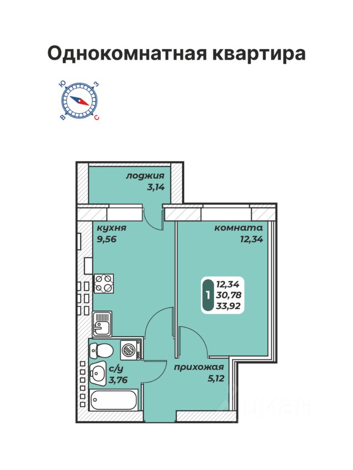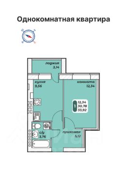 • Общая площадь 33,92 м2