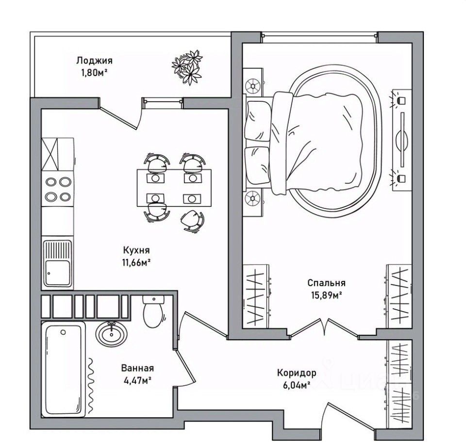 - Просторная лоджия 4 кв. м.