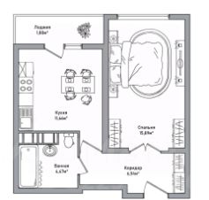 - Комфортная кухня 12 кв. м. с кухонной зоной и выходом на лоджию