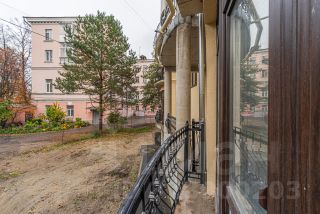 Большая застеклённая лоджия выходит во внутренний двор, создавая тихое место для отдыха.