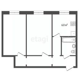 Кухня площадью 6 м² оптимальна для приготовления пищи и семейных обедов, а высота потолков 2,7 метра создает ощущение простора. Объект не требует срочного ремонта и представляет собой чистую черновую отделку — идеальную основу для реализации любого дизайнерского проекта с учетом ваших предпочтений без необходимости переплачивать за уже выполненный, но, возможно, не устраивающий вас ремонт.