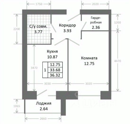 Общая площадь36,32 м²