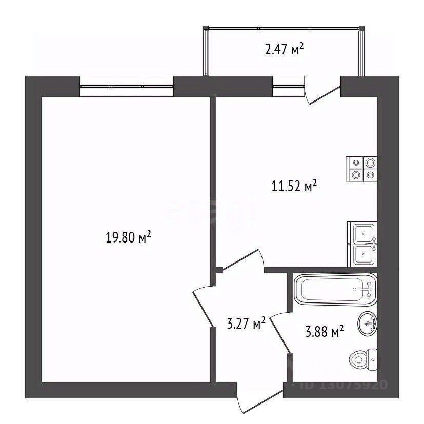 Общая площадь - 38,7 кв.м.