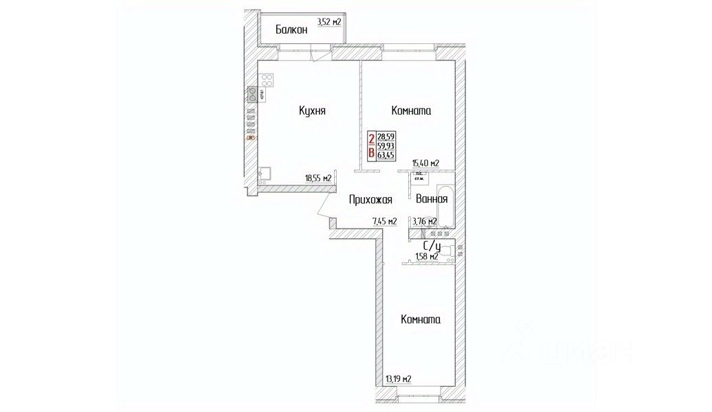Продаётся 2-комнатная квартира в строящемся доме (Дом 11), срок сдачи: III-кв. 2026, общей площадью 63.45 кв.м., на 3 этаже. ЖК "Ярославский" это комплекс из современных, надежных и теплых двухсекционных домов с грузопассажирскими лифтами. Он ориентирован на практичных людей, которые смогут оценить комфорт городской жизни в благоприятном, с точки зрения экологии, районе. В шаговой доступности все элементы инфраструктуры: два детских садика, школа, физкультурно- оздоровительный комплекс, поликлиника, почта, отделение банка, магазины и остановки транспорта общего пользования. Благоустроенная придомовая территория предполагает размещение площадок для отдыха и игр детей, парковочных мест для автомобилей, установку контейнерных площадок для мусора, устройство газонов, посадку деревьев и кустарников. Все перечисленные аспекты+привлекательная цена станут убедительными доводами в пользу ЖК "Ярославский" при выборе недвижимости, а проживание в нем - комфортным.