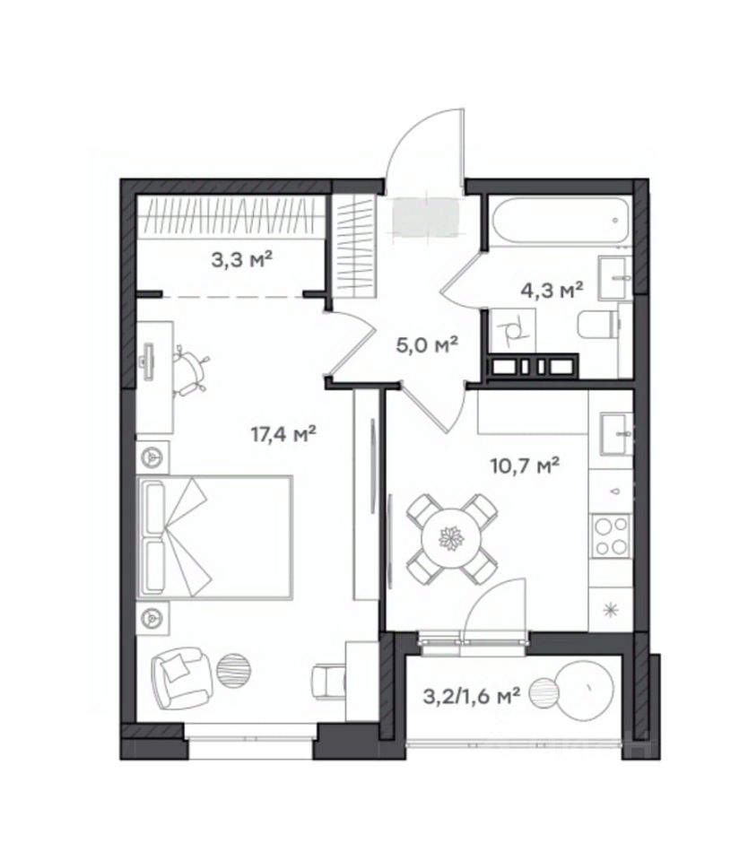 Жилая площадь17,4 м²
