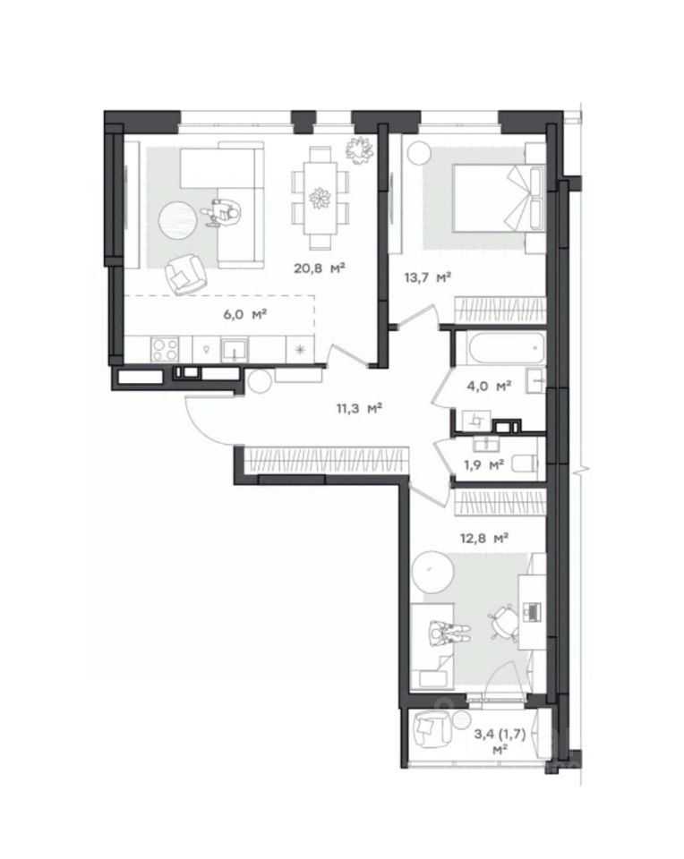 *Квартира с двумя комнатами