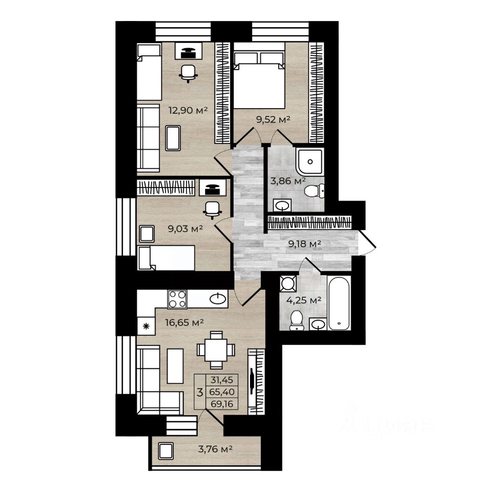 - 35 Уникальных планировок