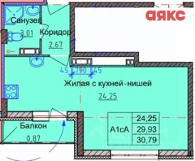 Квартира расположена на 8 этаже 10-этажного дома и имеет общую площадь 31 кв.м.