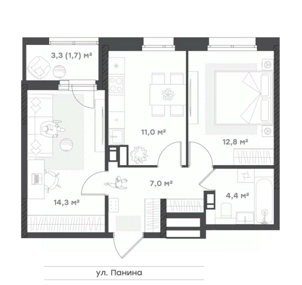 Семейная квартира - 2 комнаты и просторная кухня-гостиная с выходом на лоджию