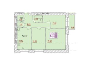 3-комн. квартира, 73,8 м²