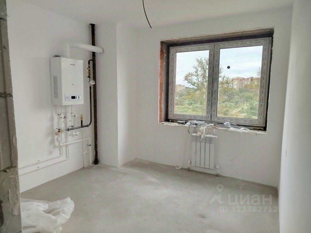 стены выровнены, стяжка на полу, разводка под сантехнику, газовая плита, входная железная дверь, газовый котел, газовая плита и остекление лоджий.