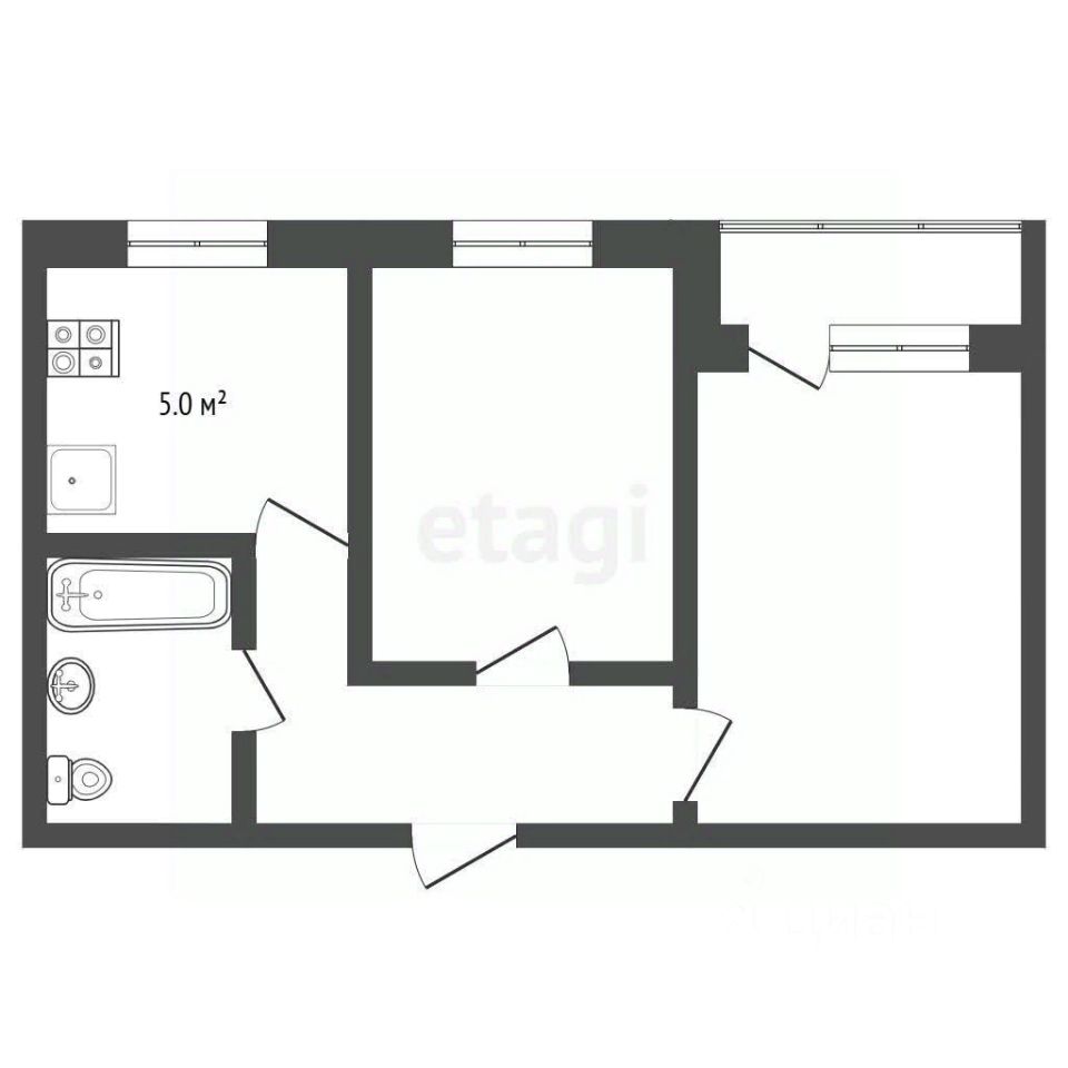 Планировка функциональна и рациональна: изолированные комнаты позволяют комфортно организовать пространство для семьи или работы, а кухня площадью 5 кв. м. спроектирована для эффективного размещения необходимой бытовой техники и мебели с учетом принципов эргономики. В качестве дополнительного бонуса в стоимости объекта учтена возможность оставить действующую стиральную машину и холодильник.