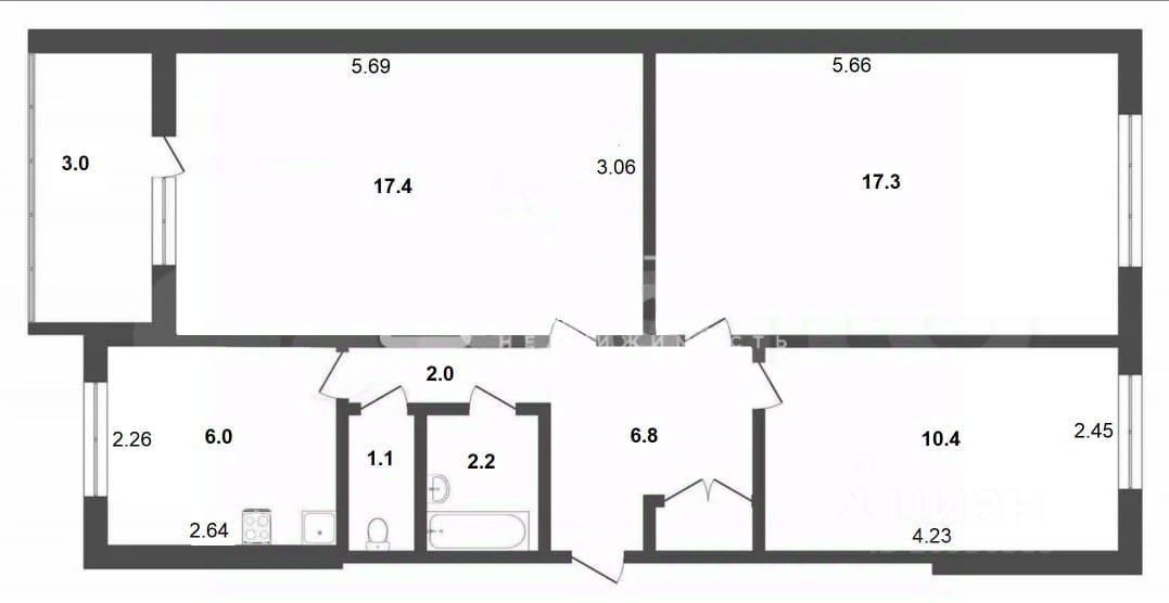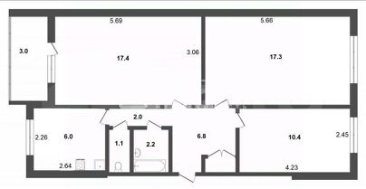 - Общая площадь: 63 м, площадь кухни: 7,5 м