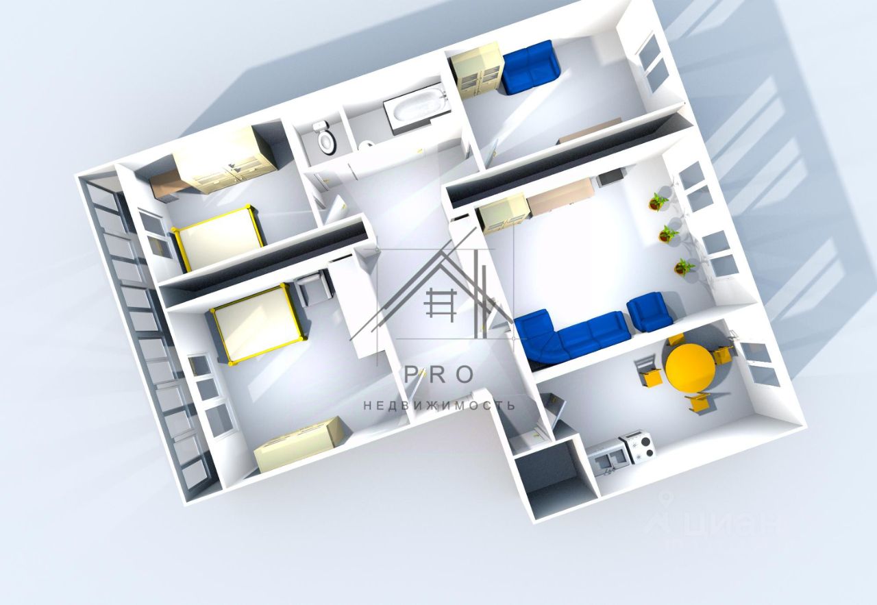 - все комнаты раздельные 9 м2, 12 м2, 12.3 м2 и 17.6 м2, квадратной формы, что позволяет комфортно расставить мебель