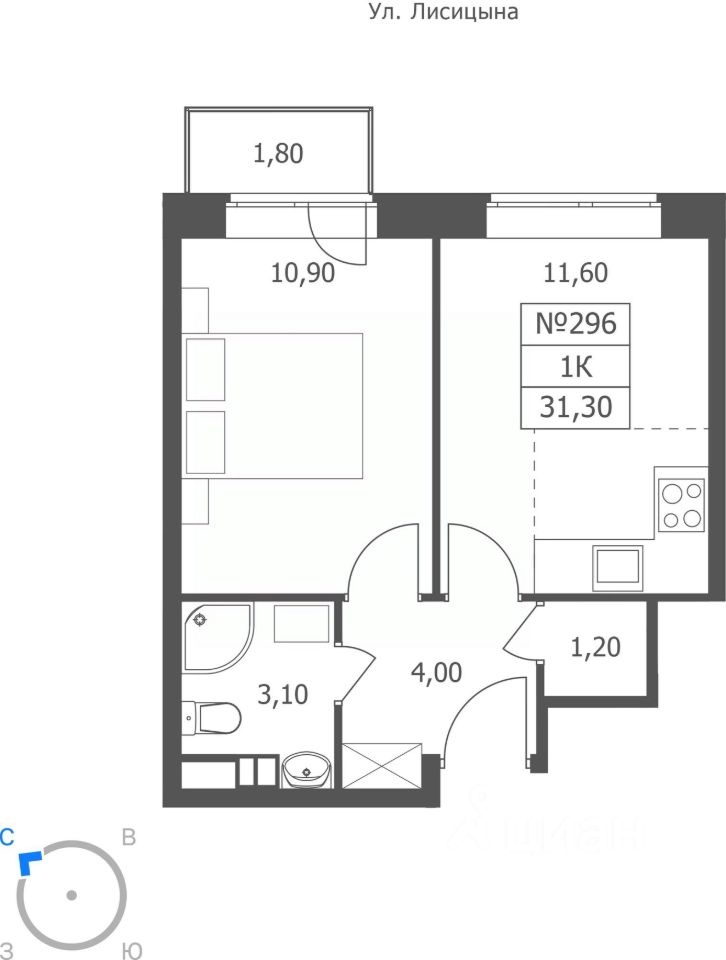 Общая площадь31,3 м²