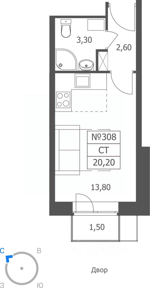 Общая площадь20,2 м²