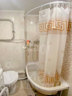 Душевая кабина и туалет совмещенные, в кафеле. Остается стиральная машина и водонагреватель;