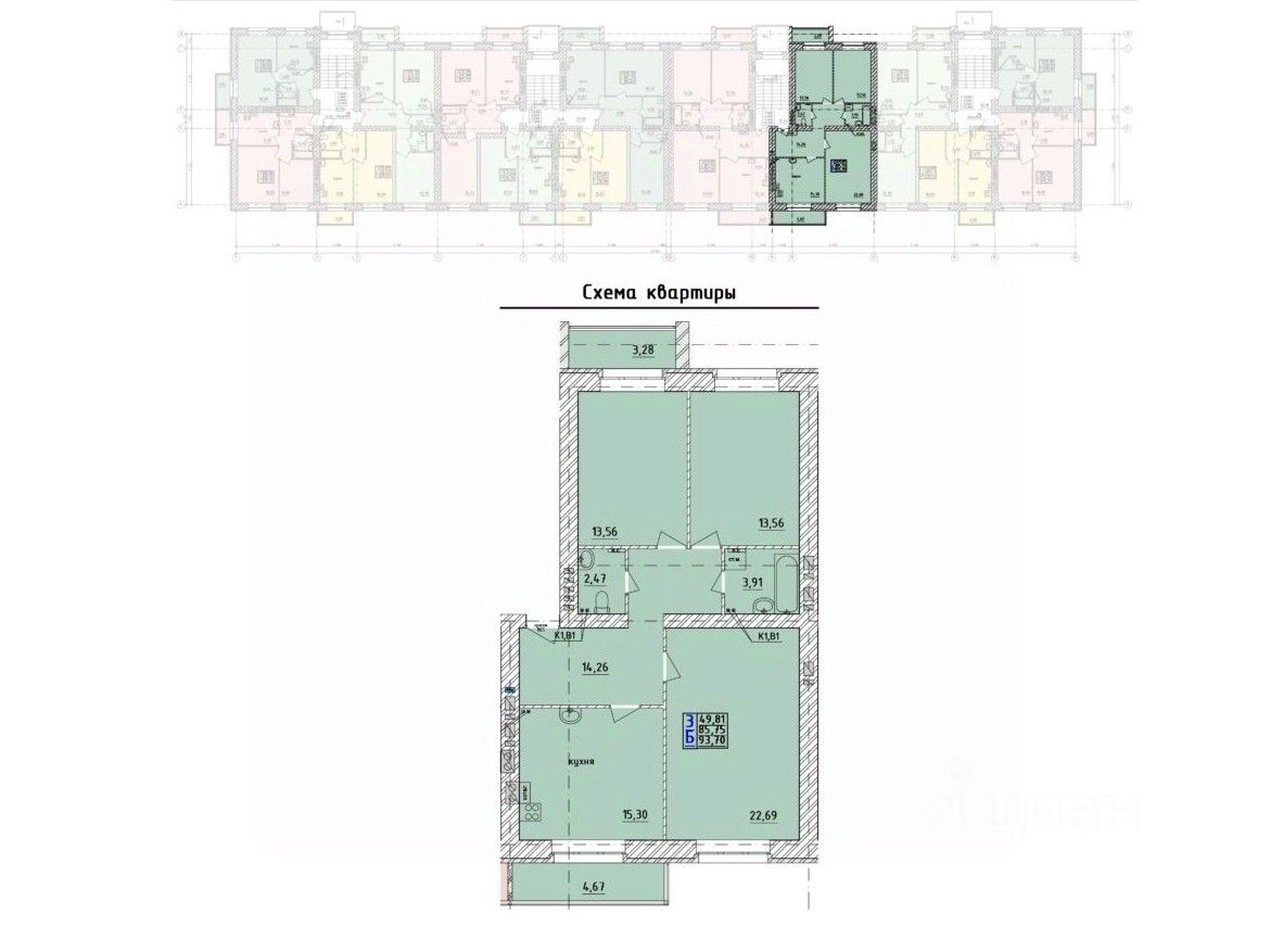 Продаётся 3-комнатная квартира в сданном доме (Дом 4 (5 по ГП)), срок сдачи: IV-кв. 2021, общей площадью 93.7 кв.м., на 4 этаже. Расположение, транспортная доступность