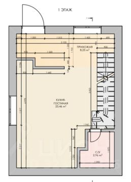 Первый этаж: прихожая, кухня-гостиная и туалет с душевой совместный. Пол-полусухая стяжка, водяной теплый пол, поставлен новый газовый одноконтурный котел (не от застройщика), смонтирована лестница (монокосоур) с 1 на 2 этаж, сделана система водонагревания и отопления (для экономии газа)