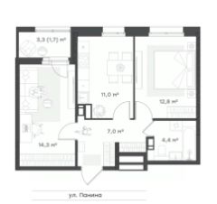 Семейная квартира - 2 комнаты и просторная кухня-гостиная с выходом на лоджию