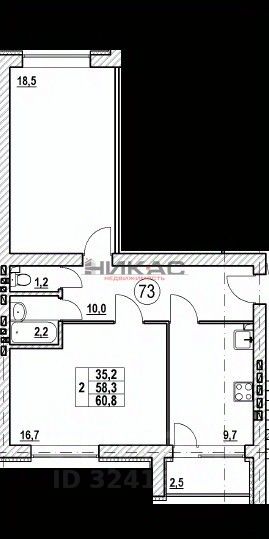 Общая площадь60,8 м²