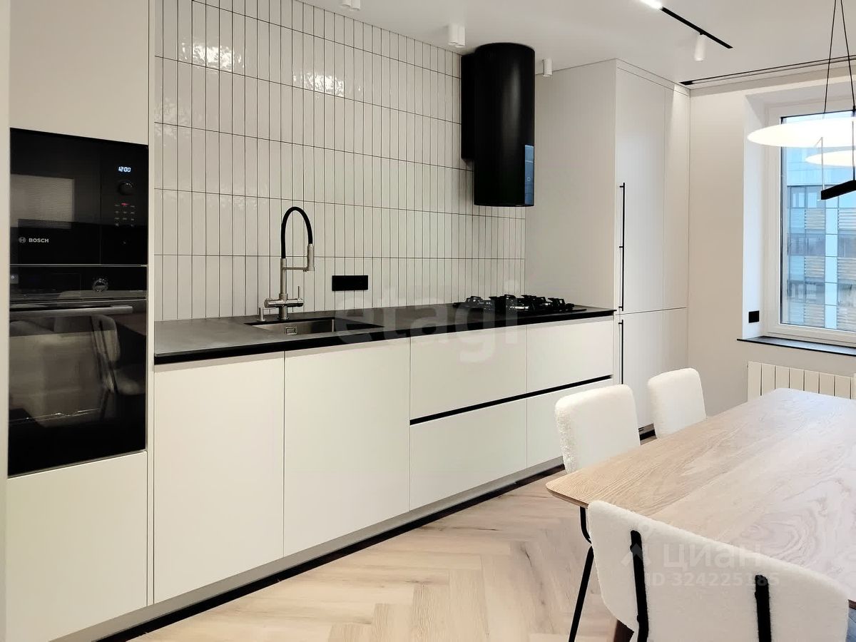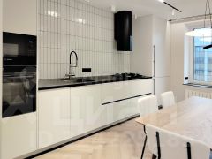 кухонный гарнитур, фасады эмаль, премиальная встраиваемая микроволновка , духовой шкаф и посудомоечная машина всё Воsсh, варочная панель и цилиндрическая вытяжка mаunfiеld , встраиваемый холодильник SМЕG, столешница из компакт плиты, качественный смеситель, фильтры на питьевую воду;