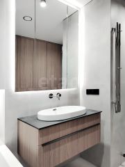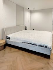 мастер - спальня с лоджией (теплый пол , закладные в стене для установки тренажера), ванной комнатой (есть большой водонагреватель, магистральные фильтры на воду, теплый пол) , гардеробная и постирочная, кровать 200х200, премиум матрас, дизайнерские прикроватные тумбы;