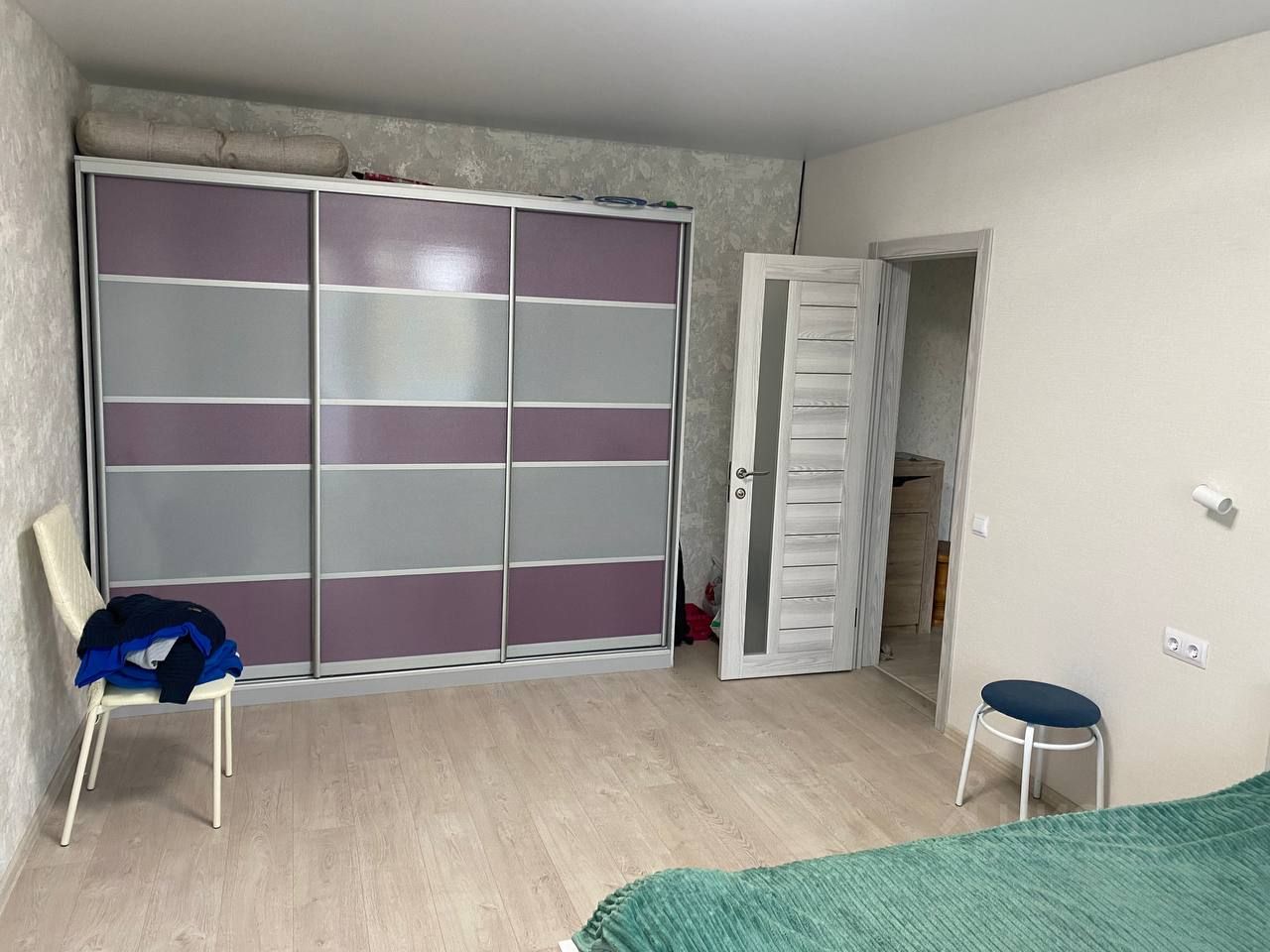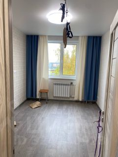 Потолки: Установлены во всей квартире современные натяжные потолки с матовым эффектом со встроенными и потолочными светодиодными светильниками. В маленькой комнате смонтирован скрытый карниз. В большой комнате оставлена закладная под встраиваемый шкаф-купе ( есть проект шкафа).