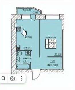 2-комнатная квартира в кирпичном доме с индивидуальным отоплением