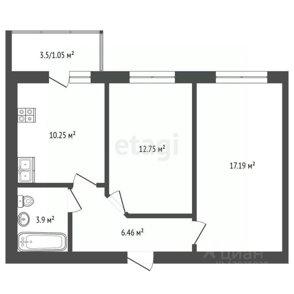 • Балкон площадью 3,5 м² — дополнительное пространство для отдыха на свежем воздухе или хранения ваших вещей.