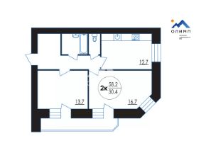 * Комната: Интересной, оригинальной формы, что добавляет квартире индивидуальности и простора.