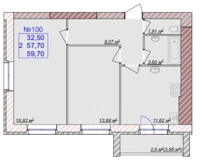 • Просторная гостиная 18.82 м²