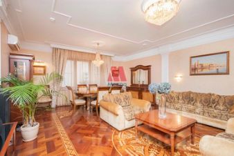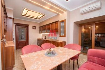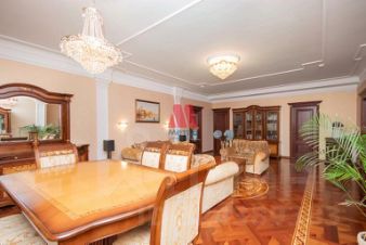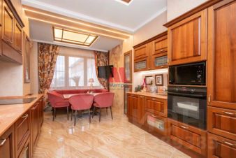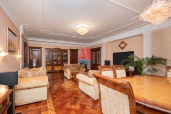 Квартира обустроена в английском стиле. Помещения просторные, имеют правильную форму с высокими потолками. Выдержанная по всей квартире цветовая гамма в сочетании с классической мебелью. В интерьере используются натуральные материалы.