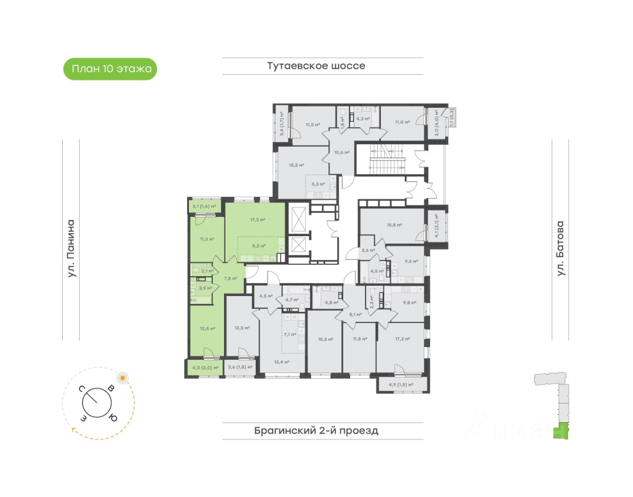Комнаты выходят на разные стороны света.