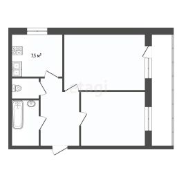 Двухкомнатная квартира общей площадью 49.8 кв.м расположена на третьем этаже пятиэтажного кирпичного дома.