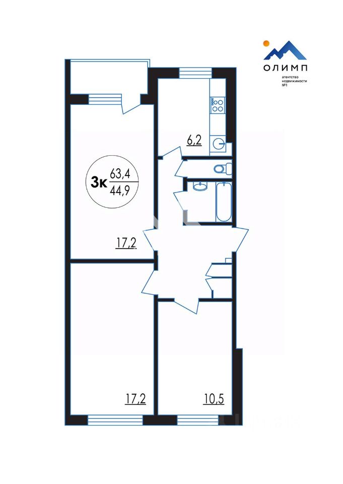 * Отличная планировка: Все три комнаты изолированы, что обеспечивает уединение и комфорт для всех членов семьи.