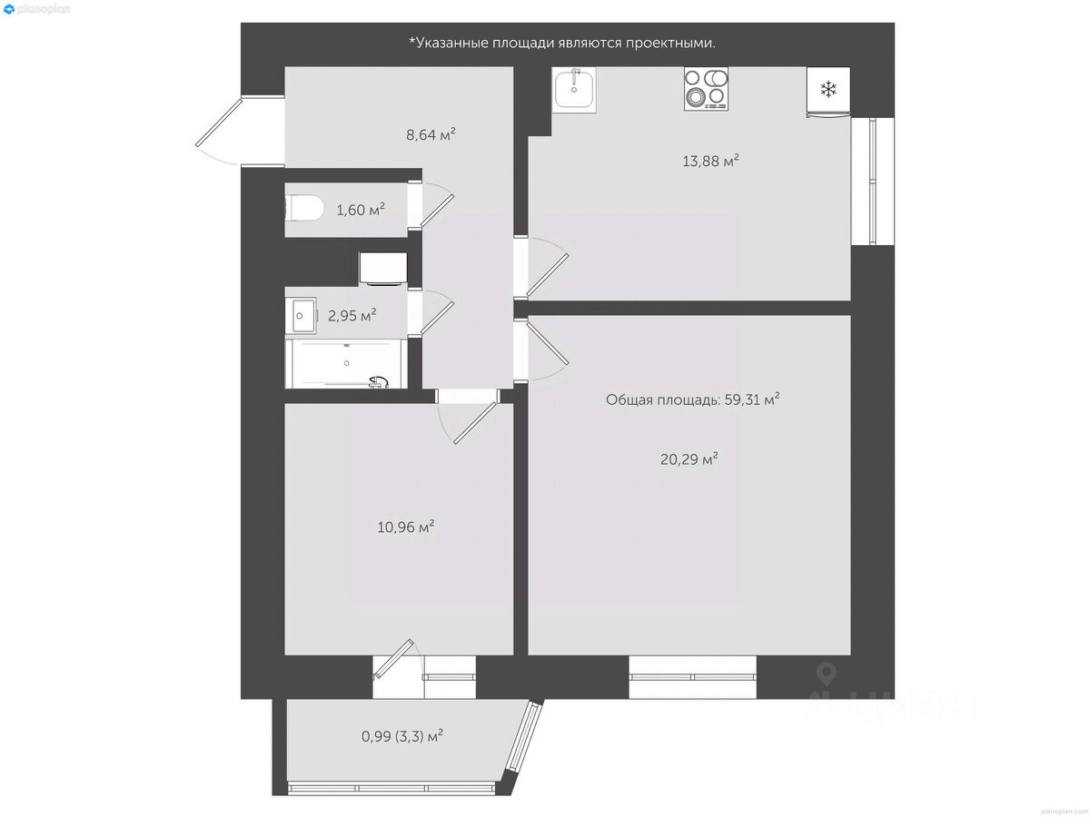 Общая площадь65,5 м²