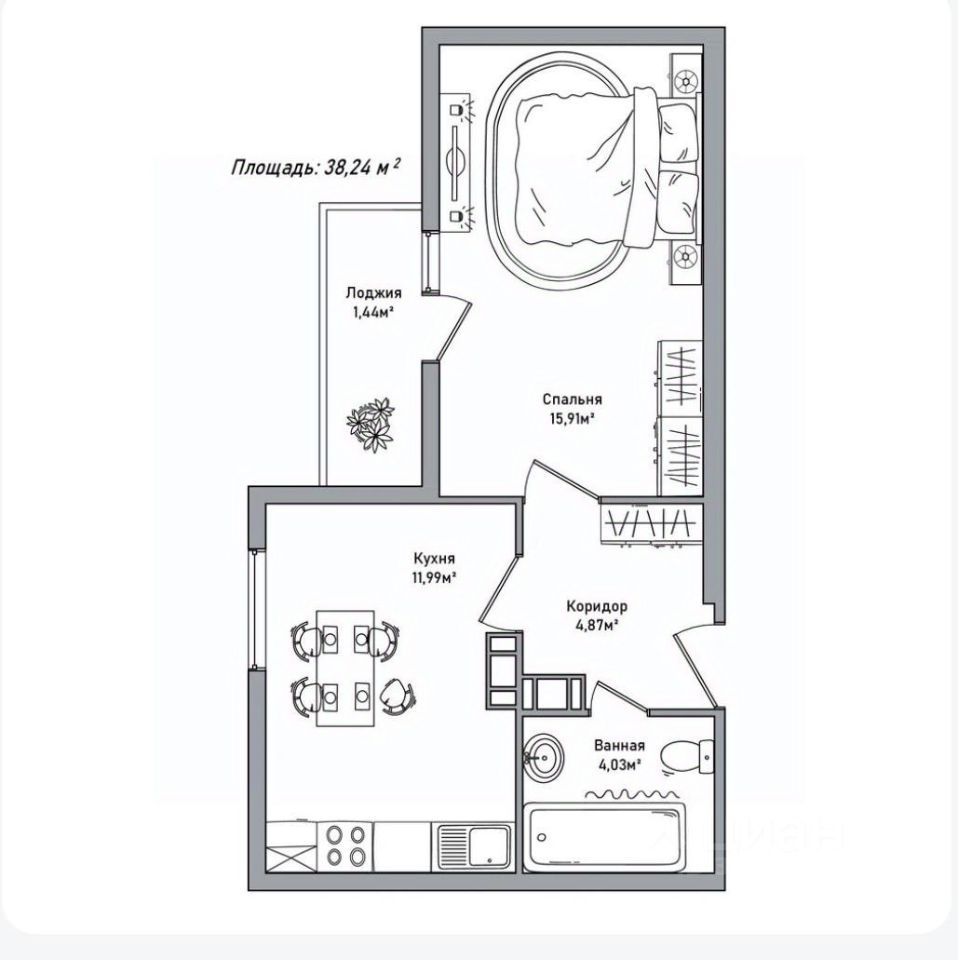 Представляем вам уютную и хорошо продуманную квартиру общей площадью 38,24 м², где каждый метр используется с максимальной пользой. Планировка отличается четким зонированием, что создает ощущение простора и порядка.