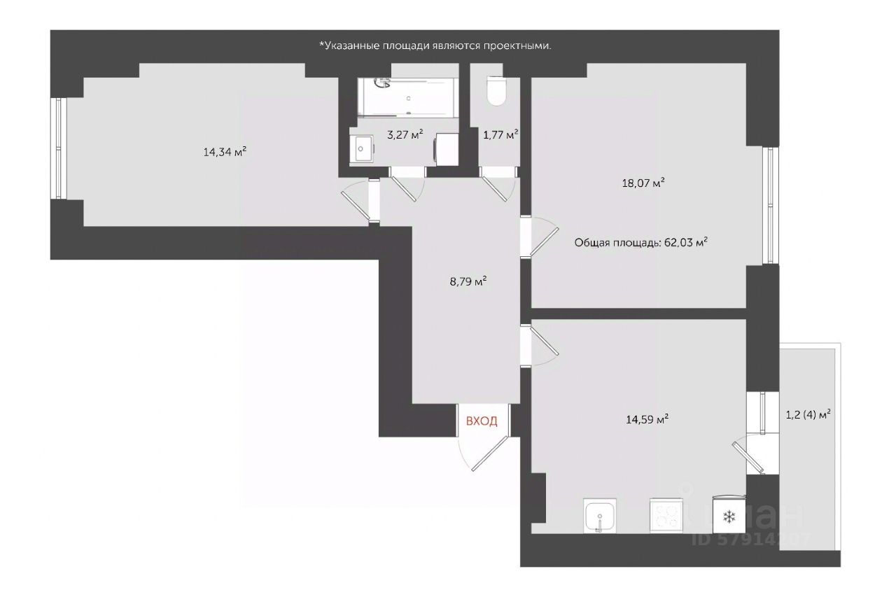 Общая площадь65,2 м²