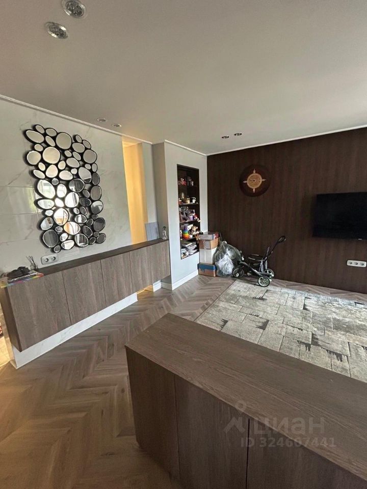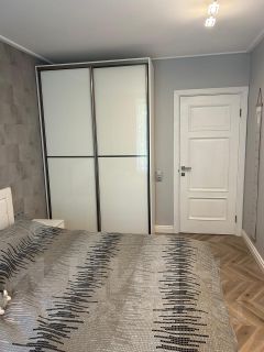 Одна изолированная комната-спальня. Просторная кухня-гостиная, выход на застекленную лоджию. Кухня сделана под индивидуальный заказ, техника вся встроена. Совмещенный сан. узел. Отдельная гардеробная для хранения вещей.