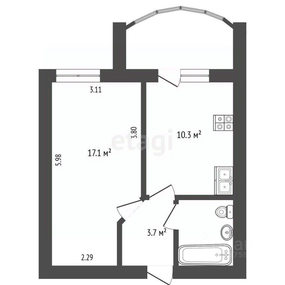 - выполнена стяжка полов, выровнены и отштукатурены стены, что позволяет выполнить ремонт на свой вкус. Просторная эргономичная планировка, комната 17,1 кв.м. и кухня 10,3 кв.м., которая позволит вам с комфортом обустроить и принимать гостей. Санузел совмещенный. Большая лоджия из кухни - установили хорошие теплые окна, если утеплить - получиться хорошая зона отдыха или кабинет.
