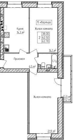 Продаётся 2-комнатная квартира в строящемся доме (Строение 3), срок сдачи: IV-кв. 2025, общей площадью 63.7 кв.м., на 1 этаже. Проект предусматривает два подъезда, с удобными планировками квартир, от однокомнатных до двухкомнатных квартир.