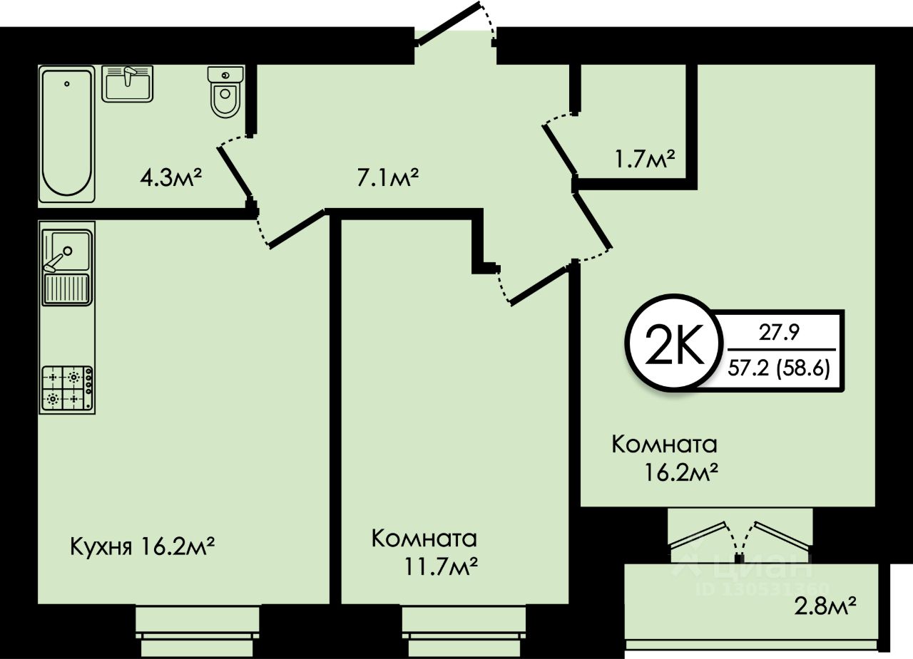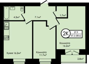 58,6 м²