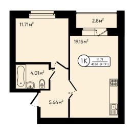 Общая площадь41,91 м²