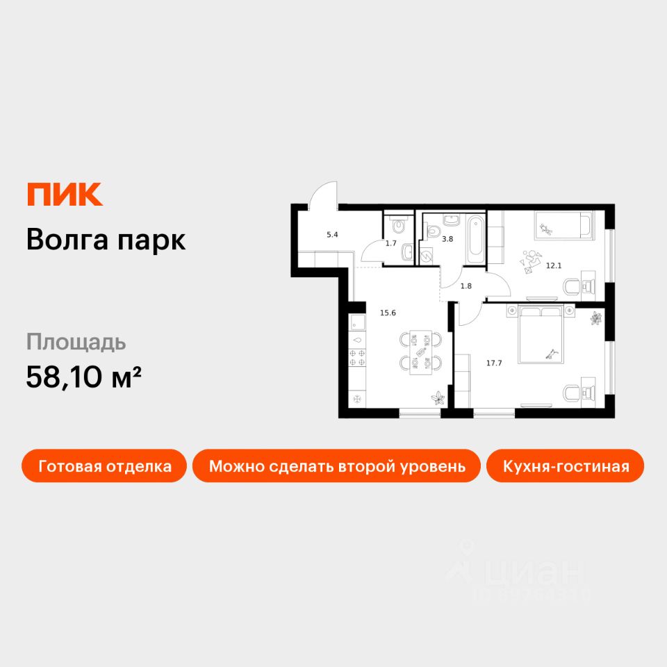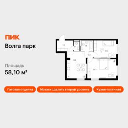 Продаётся 2-комн. квартира площадью 58,1 кв.м на 1 этаже 17 этажного дома (Корпус 2В, Секция 1) проекта ПИК Волга парк. Светлый просторный подъезд на уровне земли, функциональная планировка, большие окна, c отделкой.