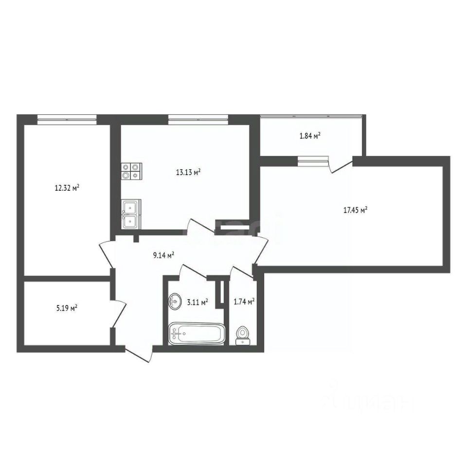 - две большие комната позволят вам организовать уютное пространство для каждого члена семьи;