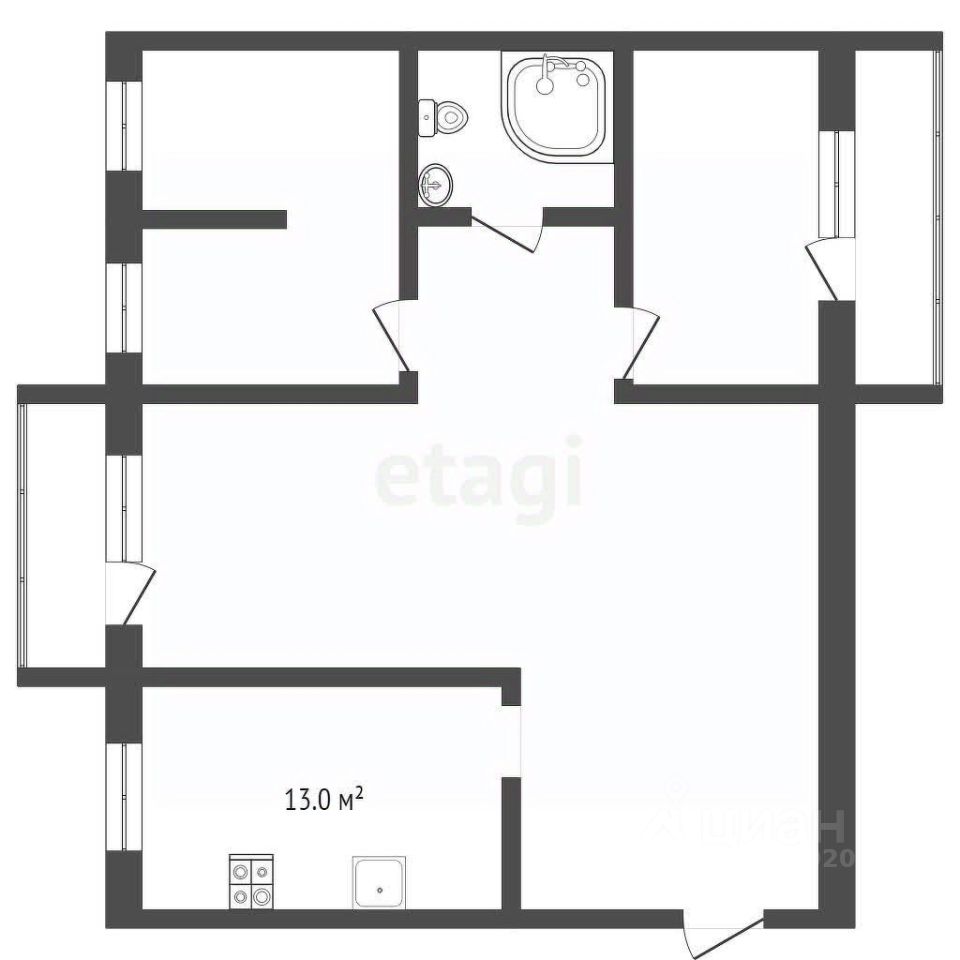 * Проведена рациональная перепланировка: изначально большая спальня с двумя окнами грамотно разделена на две полноценные изолированные детские комнаты.