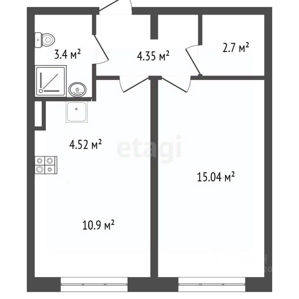 Общий метраж 40,9 м2.
