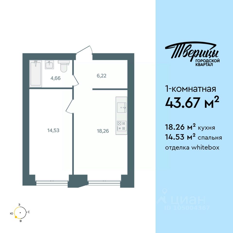 Продаётся 1-комнатная квартира в строящемся доме (Стр.1 этап 1), срок сдачи: I-кв. 2028, общей площадью 43.67 кв.м., на 3 этаже. Новый центр Заволжского района.