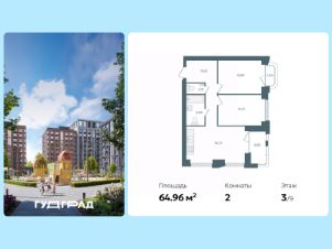 Продаётся 2-комнатная квартира в строящемся доме (Стр.1 этап 1), срок сдачи: I-кв. 2028, общей площадью 64.96 кв.м., на 4 этаже. Новый центр Заволжского района.